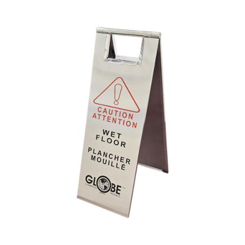 24"H "Caution Wet Floor" Safety Floor Sign English & French Imprint, Stainless Steel