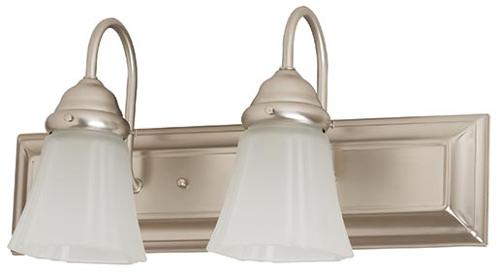 TWO LIGHT VANITY FIXTURE FROST GLASS SATIN NICKEL