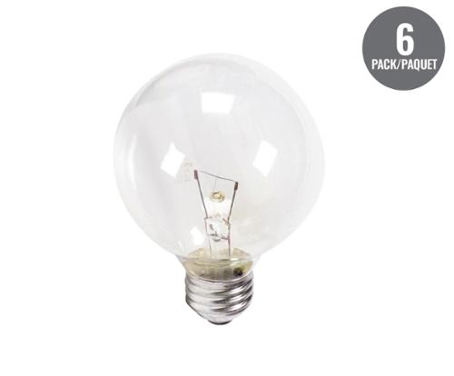 G-25 Globe Bulb, 25 Watt, 130 Volt, Medium Base, 6Pack