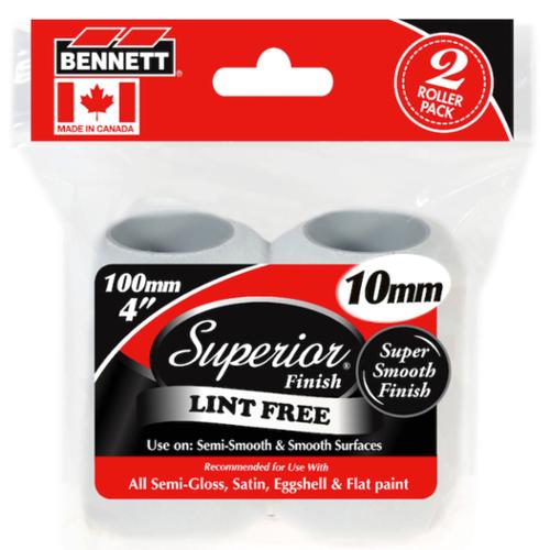 Bennett® Superior Finish 4" Lint-Free 10 mm Paint Rollers, 2 Pack