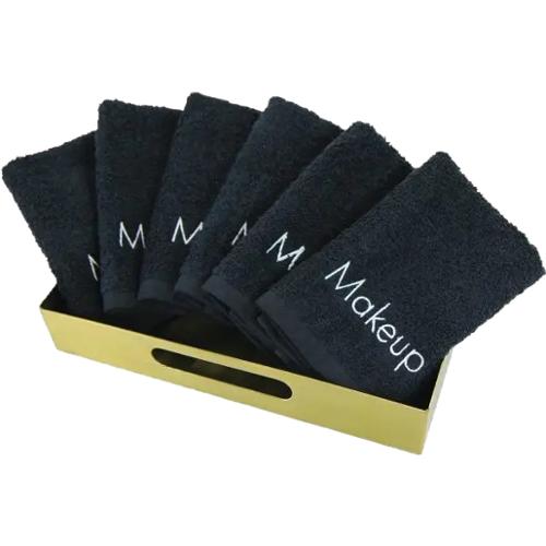Makeup Remover Towel, 13 x 13", Black With White Embroidery, Pack Of 12