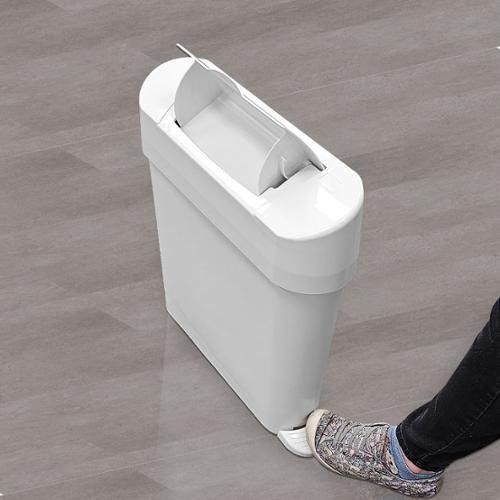 Prevent The Flushing Of Sanitary Napkins With The Foot Pedal Sanitary Napkin Receptacle. It Is A Sanitary Disposal Bin That Features A Slim Space Saving Design To Easily Fit In Any Washroom Stall. It Has Soft Edges To Aid In Cleaning And Functionality. Its Snap In/Out Flap Insert Allows For Easy Install Of Liners, Protects Against Soiling, And Reduces Germ Transmissions And Cross Contamination.