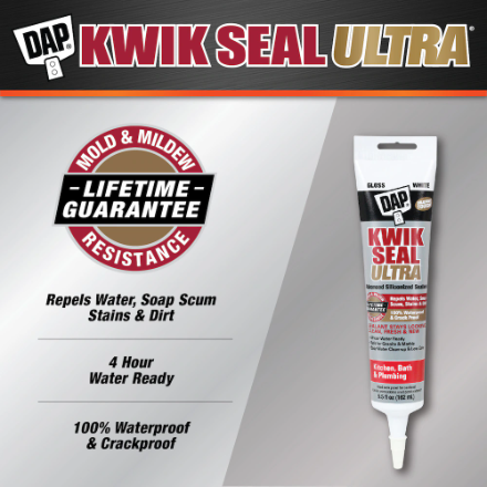 Enhance the finish and durability of your kitchen and bath projects with KWIK SEAL ULTRA®. This advanced sealant is crafted with innovative ultra-hydrophobic technology, powerfully repelling water, dirt, soap scum, and stains. Ideal for moisture-prone areas, it offers a lifetime guarantee against mold and mildew, ensuring surfaces stay fresh and clean over time. KWIK SEAL ULTRA® is completely waterproof and crackproof, providing strong multi-surface adhesion for a reliable seal on various materials, including granite and marble. The easy-to-apply formula ensures smooth gunning and tooling, features a low odor, and cleans up effortlessly with water. Plus, it's ready for water exposure in just 4 hours, making it a practical and efficient choice for any project.