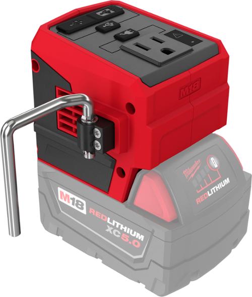 'The Milwaukee® M18™ Top-Off™ 175W Power Supply Delivers Faster Simultaneous Power To Personal Devices And Small Electronics. Attach Any M18™ Battery To Provide Continuous Power Or Recharge Devices With (1) AC 120V Outlet, (1) USB-C PD Port, And (1) USB-A Port. Users Can Quickly Charge Up To Three Devices At The Same Time, Without The Barriers Of Speed Throttling. With The USB-C PD Port (45W), This Battery Inverter Is Capable Of Recharging Devices, From A Fully Depleted State To 80% Capacity, Up To 75% Faster Than Conventional Wall Chargers (5W). The Compact Portable Power Supply Has An Attached Metal Rafter Hook That Can Be Extended To Hang It From Carts, Lumber, Or Other Jobsite Materials When Worksurface Space Is Limited. Users Can Instantly Set Up A Mobile Workstation Or Keep Electronics Securely Within Eyeshot, Rather Than Making Frequent Trips To A Wall Outlet.