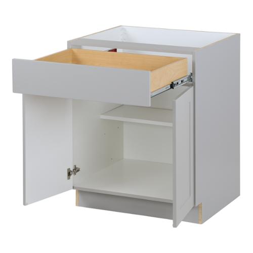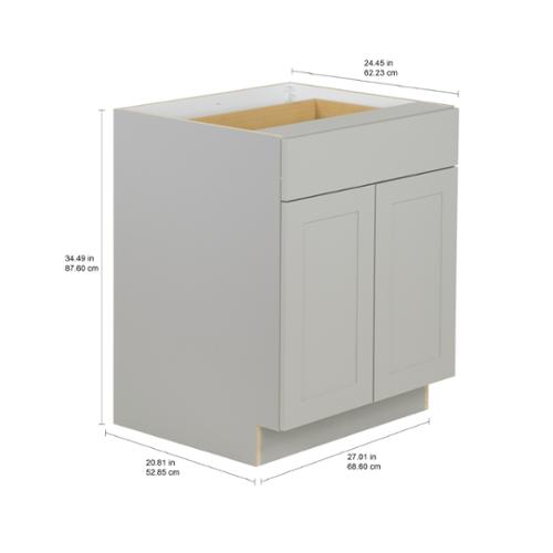 Demonstrating a transitional appearance that will withstand the test of time, the Edson 27 in. W assembled base cabinet in Grey is beautifully crafted with a slab drawer front and 2 shaker style doors. The Edson collections Grey color offers a taupe-grey finish that is sure to produce a serene atmosphere. Including a full overlay door style, the base cabinet is fully assembled making it easy for you to build the kitchen, bathroom, laundry room, or office of your dreams.