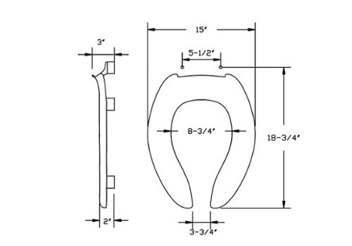 Centoco® Elongated, Heavy-Duty Commercial Open Front Plastic Toilet Seat, w/ 2" Height Lift