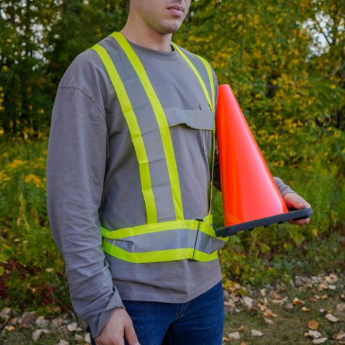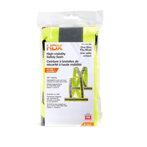 Be Safe And Be Seen In This Yellow Safety Sash That Complies With The CSA Z96 Standard. This One Size Fits Most Hi Visibility Sash, Is Made With Durability And Safety In Mind. Reflective Silver Stripes Ensure Greater Visibility. Easy On/Off For Ease Of Use