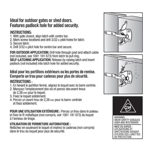 • Compatible with a padlock for extra security (padlock sold separately) • Made of powder-coated steel. • Contents: gate latch (1), bag of screws (1) • Mfg #860-304