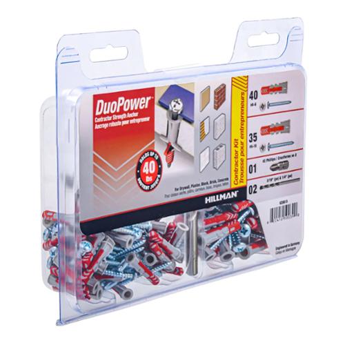 'DuoPower's Contractor-Strength Anchor is a one-product solution for quick and easy fastening in a variety of applications and base materials • drywall, plaster, block, brick and concrete. Made of a combination of two material components, this anchor offers increased performance in solid and hollow building materials. Ideal for hanging electrical fixtures, drapery supports, kitchen and bathroom accessories, pictures, mirrors and more.