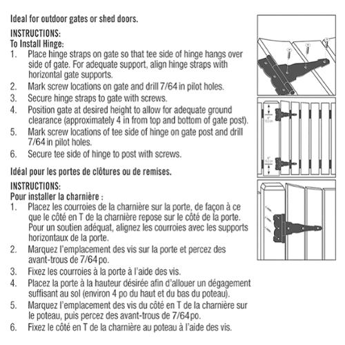 'T-Hinges are designed for applications with narrow frame or post, such as tool chests, barn doors, shed doors, and gates. Screw holes are staggered to spread out load and to prevent wood splitting. Can be used for left or right hand installations.