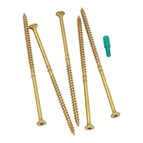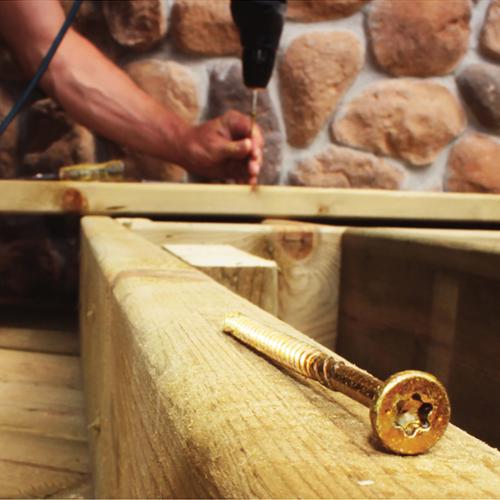 GRK's R4 self-countering screw has a new underhead with saw-blade like cutting teeth and six self-contained cutting pockets. Together they act similar to a circular saw blade, transporting the drill dust away from the edge of the screw hole while cutting a perfectly clean hole into even the most brittle materials without cracking any surface treaent. This design also further enhances the R4 versatility by allowing the fastener to be installed without countersinking into even the hardest woods. The R4 screw closes the hole off with precision, leaving no damaged fibers around the head. Applications include wood, particle board, plastic, sheet metal, cement fiberboard, composite decking, wood decking and melamine.