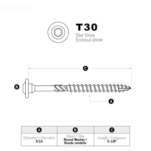 • Round head with built-in shield (washer type head) has no sharp edges like conventional lag screws