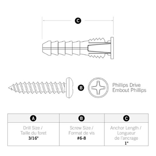 These plastic anchors are intended for light duty anchoring applications and offer extra support for loads in drywall. The anchor's fins prevent the anchor from turning in the hole during and after installation and increases holding power. Anchors offer a flush, clean appearance in drywall.