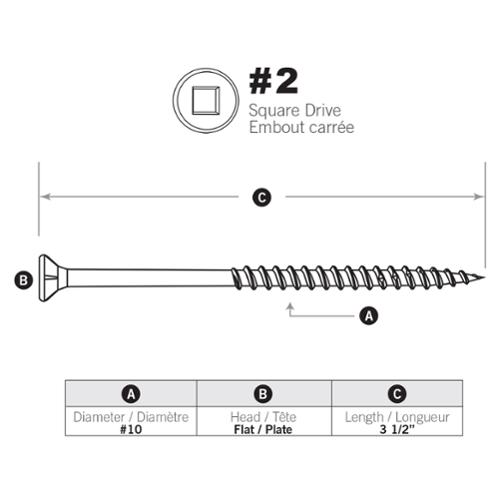Paulin#10 X 3-1/2" Flat Head Square Drive Deck Screws Steel Brown Epoxy 500 Pcs