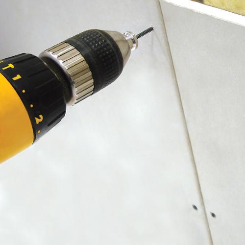 Apply drywall first to ceilings then to side walls. Install side drywall vertically with edges parallel to studs, or horizontally across the studs, which ever way will produce the minimum number of joints. Be sure to dimple head of screws to accept compound. Recommended for steel stud applications.