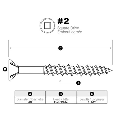 Paulin#8 X 1-1/2" Flat Head Square Drive Floor Screws Steel Phosphate 500 Pcs