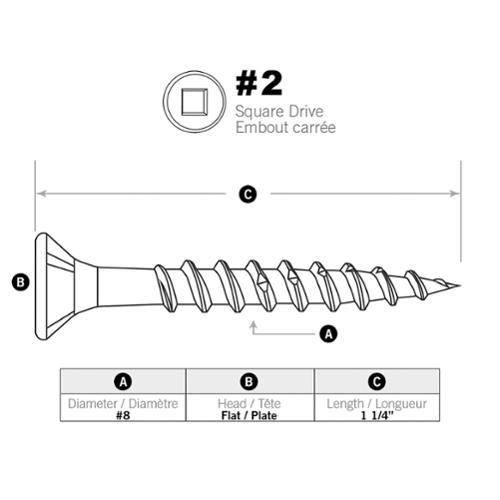 Reinforced neck for increased driving torque. Bugle head for self countersinking. Square drive for no-slip cling fit. Coarse threads for extra holding power and faster uniform draw-down. Extra Sharp point easily penetrates wood without pre-drilling. Sawtooth threads for faster driving of screws without splitting.