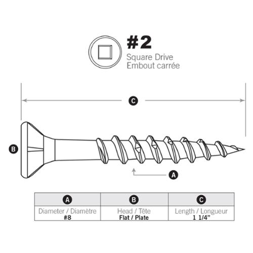 The Paulin brand deck screw is an exterior rated screw designed for wood to wood fastening. The specifically formulated coating is design to prevent rust, staining or streaking in all pressure treated wood. The DURA-GRIP square drive head improves drive torque performance and helps to avoid slipping. The Saw Tooth threads provides a faster driving screw while reducing wood splitting. An average of 4 to 6 screws are required per square foot when using a 2 x 6 or 5/4 x 6 wooden decking.