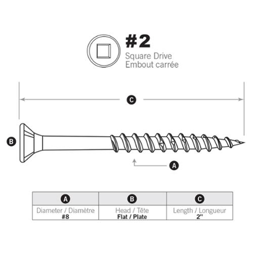 Reinforced neck for increased driving torque. Bugle head for self countersinking. Square drive for no-slip cling fit. Coarse threads for extra holding power and faster uniform draw-down. Extra Sharp point easily penetrates wood without pre-drilling. Sawtooth threads for faster driving of screws without splitting.