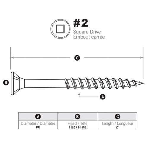 Reinforced neck for increased driving torque. Bugle head for self countersinking. Square drive for no-slip cling fit. Coarse threads for extra holding power and faster uniform draw-down. Extra Sharp point easily penetrates wood without pre-drilling. Sawtooth threads for faster driving of screws without splitting.