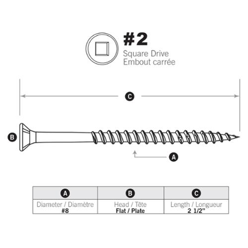 Reinforced neck for increased driving torque. Bugle head for self countersinking. Square drive for no-slip cling fit. Coarse threads for extra holding power and faster uniform draw-down. Extra Sharp point easily penetrates wood without pre-drilling. Sawtooth threads for faster driving of screws without splitting.