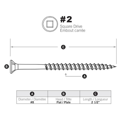 Reinforced neck for increased driving torque. Bugle head for self countersinking. Square drive for no-slip cling fit. Coarse threads for extra holding power and faster uniform draw-down. Extra Sharp point easily penetrates wood without pre-drilling. Sawtooth threads for faster driving of screws without splitting.