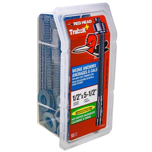 Red Head Galvanized steel hex-nut-head concrete wedge anchors are ideal for attaching electrical equipment and other items to solid concrete. The anchors are galvanized to guard against rust. Fully threaded design accommodates fixtures of various thickness.