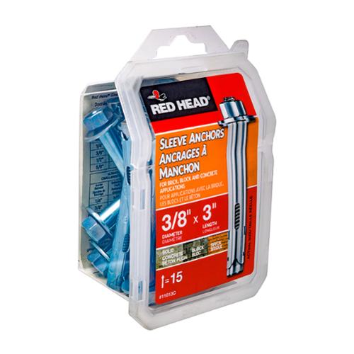 Red Head Sleeve Anchors are designed for fastening into porous concrete, hollow or grout-filled block and brick. Use to install machinery and supports, window frames, partitions, cabinets and pipe supports. Red Head Sleeve Anchors are contractor grade and building code approved.