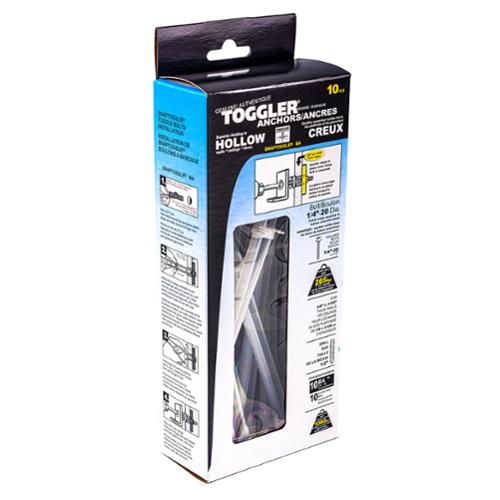 SNAPTOGGLE® heavy duty toggle anchors carry twice the load in a smaller hole than standard wing anchors. Ideal for hanging indoor accessories such as cabinents, shelving, office funiture, etc and outdoor accessores such as solar panels, garage doors, decking, etc. Can be used in drywall, tile, concrete block, plaster and more.