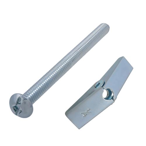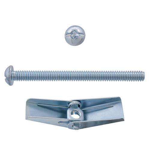 • Toggle Bolts Come With Spring-Action Wings And Are Intended For Anchoring Into Hollow Walls. The Wing Is Designed To Spread Apart Behind The Base Material Upon Installation For Firm Hold In Hollow Wall Applications. The Wing Disperses The Weight Of The Secured Item Over A Larger Area, Increasing The Weight That Can Be Secured Compared To A Regular Bolt.