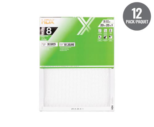 HDX 20x25x1" MERV 8 Pleated Air Filter (12-Pack)