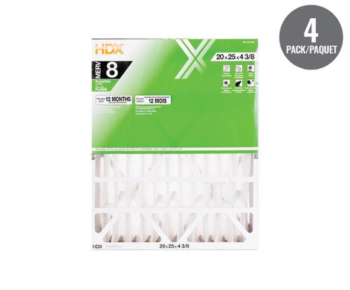 HDX 20x25x4" MERV 8 Pleated Air Filter (4-Pack)